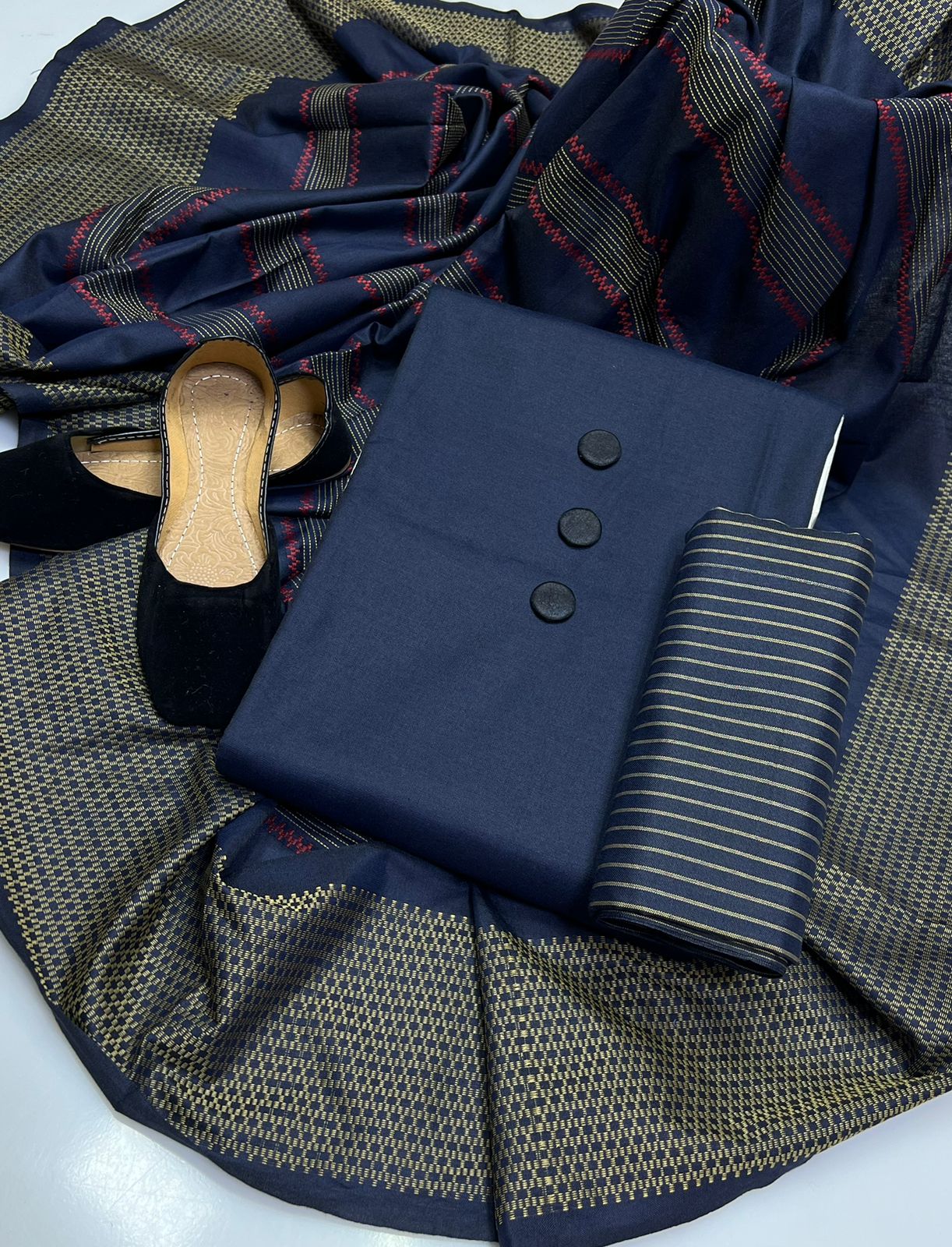 with multy banarsi border Susi shawl With matching black khussa and 3 black buttons